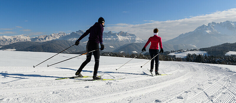 The Oclini Pass offers a wide range of beginner, intermediate and advanced trails with stunning views of the Schwarzhorn and Weißhorn, while the nearby Passo Lavazè (1800 m) is also home to a number of trails leading through forests, across snowy plains and into the Fiemme Valley.
