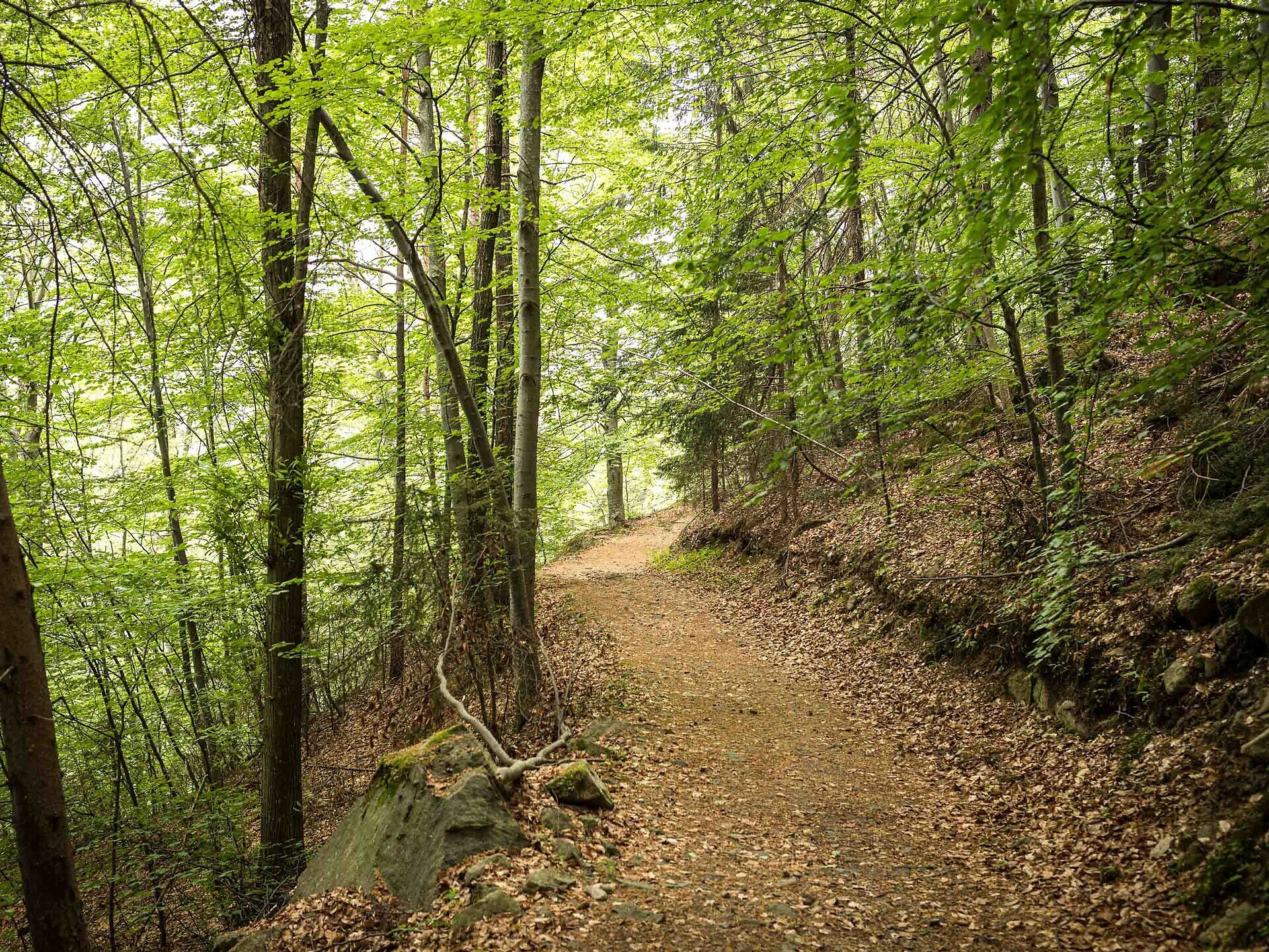 Gestärkt machst du dich auf den Rückweg: Über den bequemen Wanderweg [8] wanderst du zurück nach Steinegg, wo sich die Runde am Dorfplatz wieder schließt.