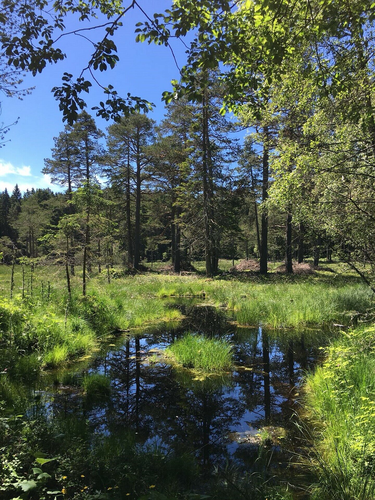 Continue into the forest on trail [1], which leads to the protected “Totes Moos” biotope, a unique peatland with rare plants and animals.