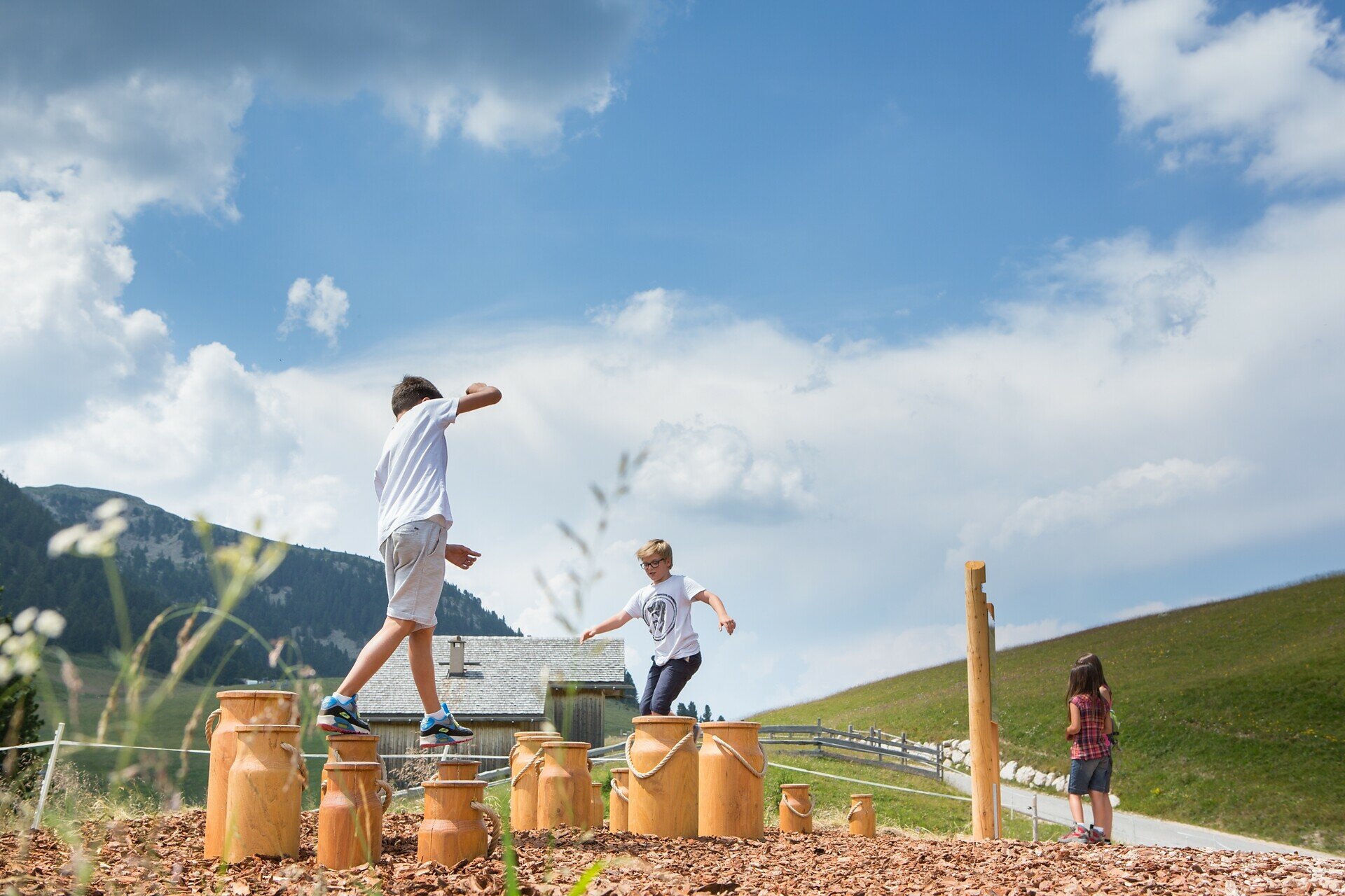 The Latemar.Alp adventure trail starts at the picturesque Epircher Laner Alm in Obereggen, guiding hikers through gentle alpine meadows and scenic pastures. Along the way, cozy mountain huts invite you to pause and enjoy breathtaking views of the Dolomites. The trail passes blooming meadows and clear mountain streams up to Feudo Pass, a perfect spot for a nature break. Families and leisurely hikers appreciate the varied route combining nature experience with South Tyrolean tradition. For the return, you can choose the same path back, the Latemar.Panorama trail, or descend via the path to Epircher Laner Alm.