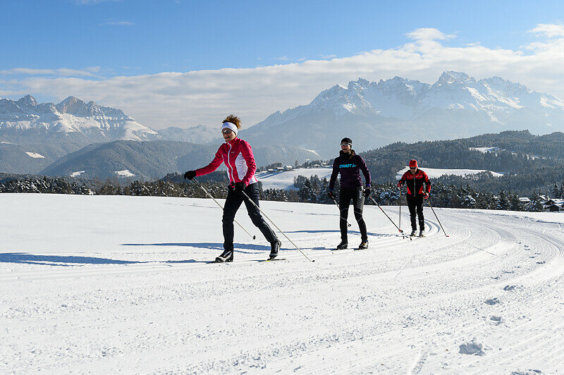 The Passo Lavazè (1800 m) is home to a number of trails leading through forests, across snowy plains and into the Fiemme Valley.