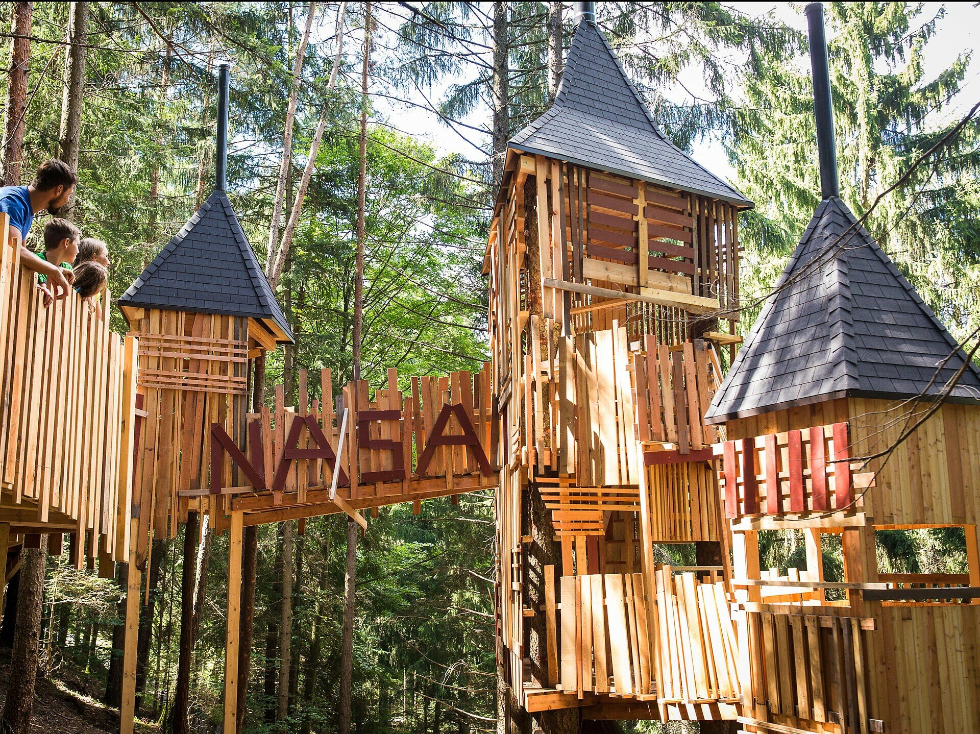 From Steinegg|Collepietra village square, follow trail [2] passing the Lex Market and after about 20 minutes you will reach the impressive wooden tree house in the shape of a rocket on the left-hand side of the trail.