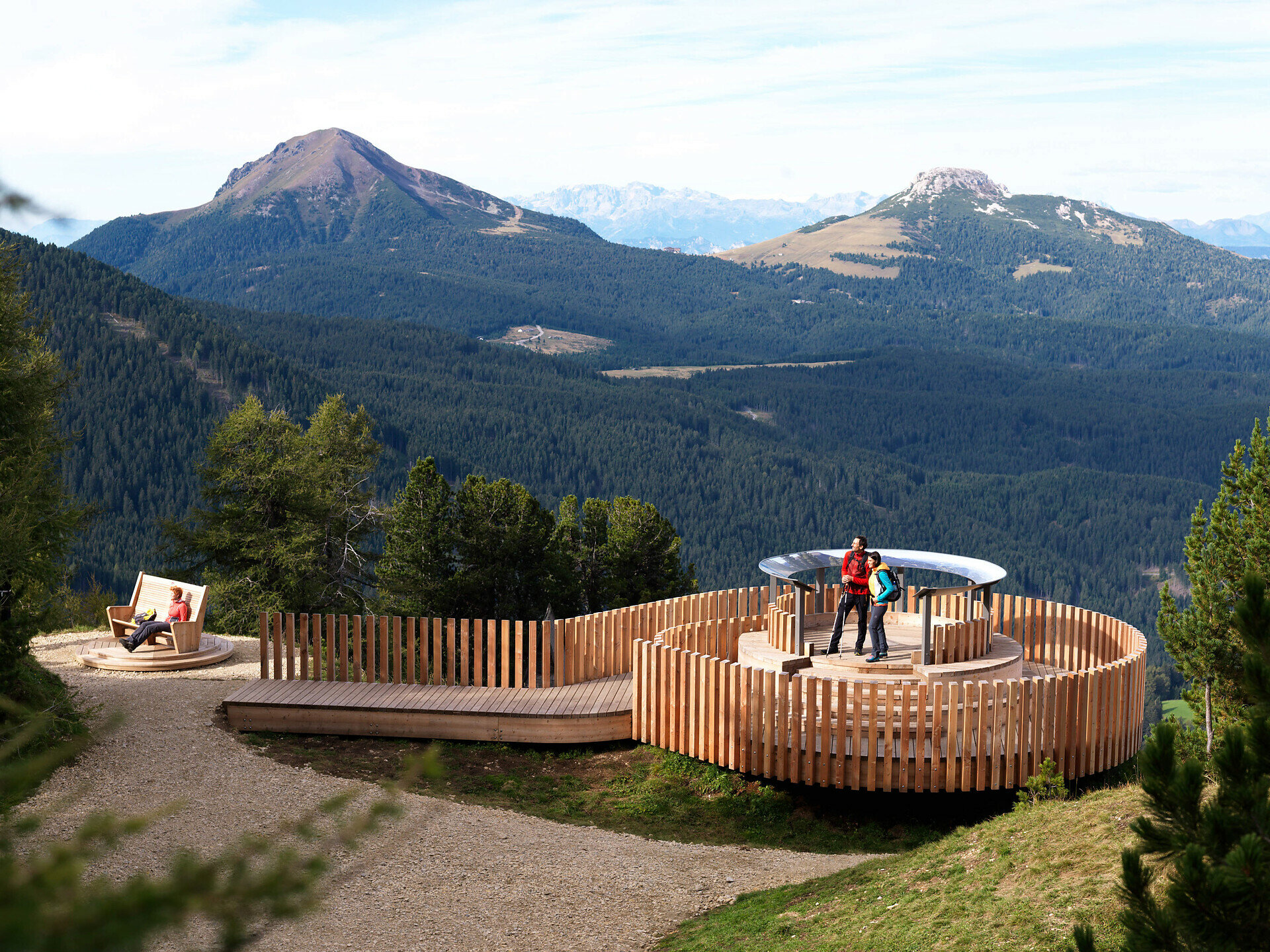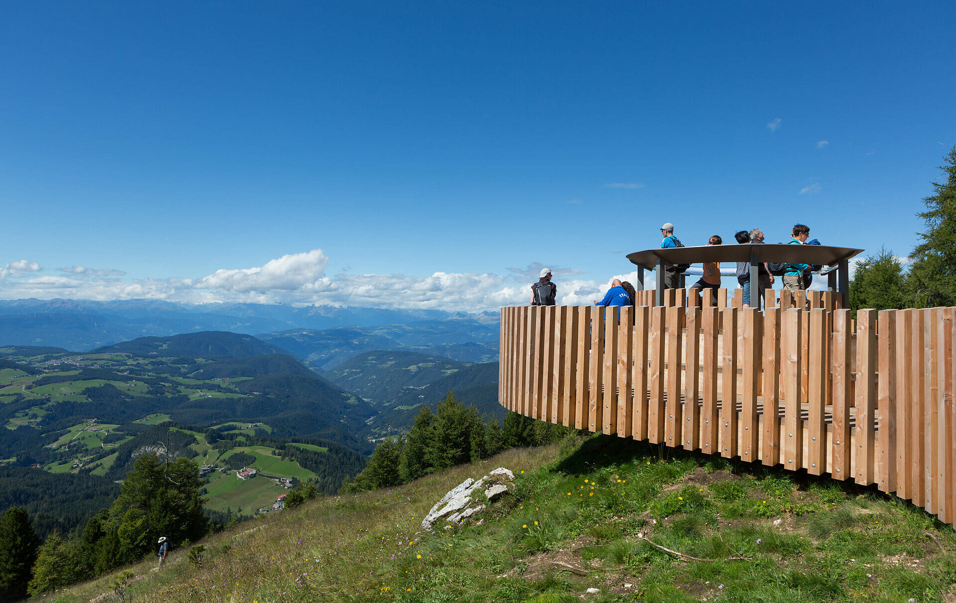 La breve escursione alla piattaforma panoramica LATEMAR.360° è un’esperienza imperdibile per tutta la famiglia. Dalla stazione a monte della seggiovia panoramica Oberholz, un sentiero comodo e ben curato conduce in pochi minuti a uno dei punti panoramici più spettacolari della zona. A quota 2.200 m, si apre una vista mozzafiato a 360° sulle Dolomiti: dalle creste del Latemar fino al Catinaccio, allo Sciliar e alle Alpi della Zillertal. Pannelli informativi chiari e dettagliati aiutano a riconoscere le vette, rendendo la visita interessante anche per bambini e curiosi. Facilmente accessibile, educativa e immersa nella natura, LATEMAR.360° è la meta perfetta per famiglie, escursionisti e amanti della montagna.