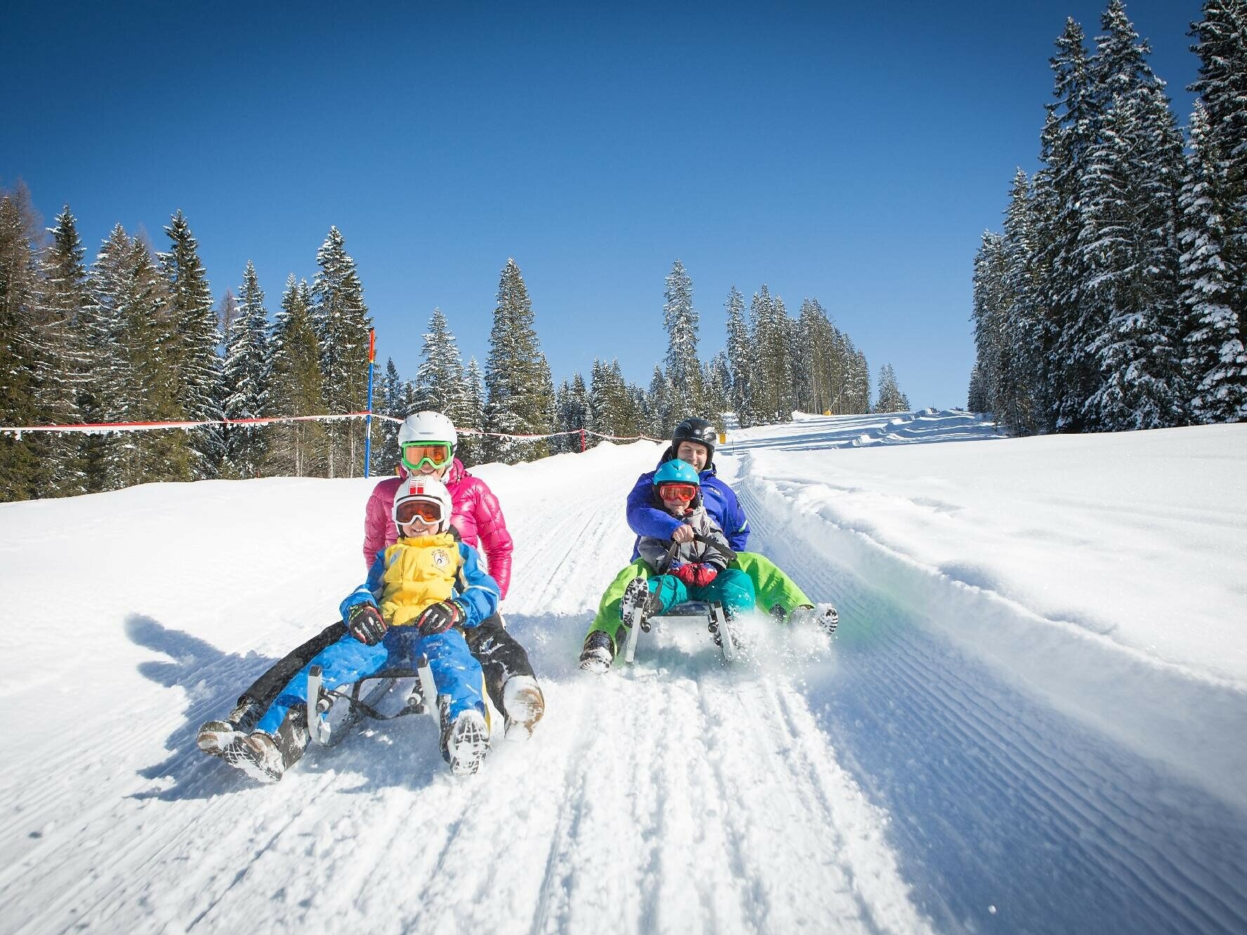 La salita in cabinovia regala panorami meravigliosi sul paesaggio innevato e sulle vette circostanti, mentre durante la discesa è possibile fermarsi al punto di ristoro a gustare le specialità locali.