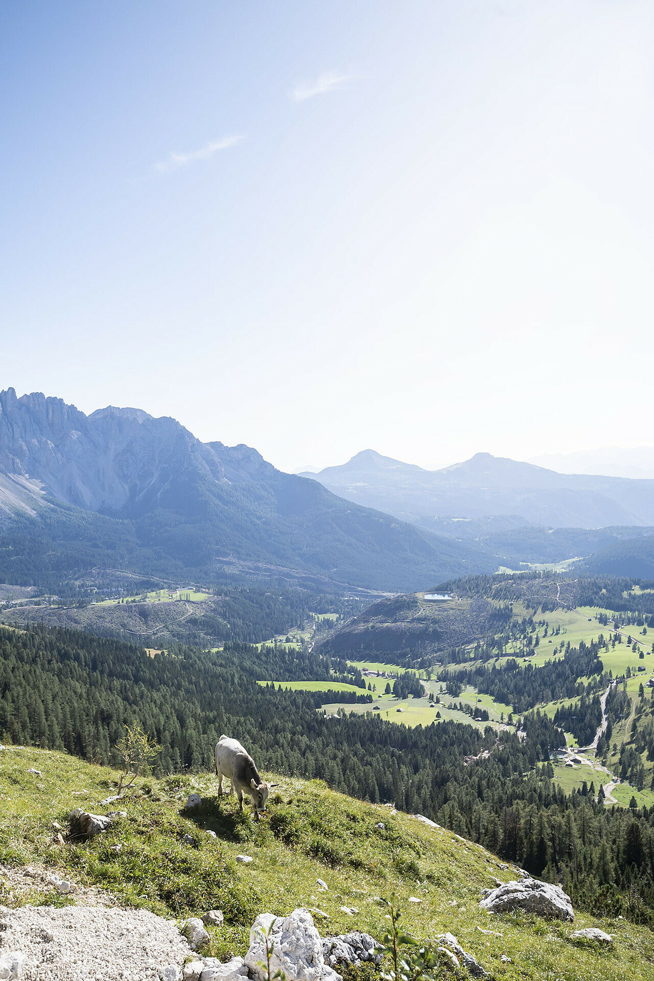 A stage of medium length, completely downhill, leaving the slopes of the Catinaccio to reach the Tierser Tal. From the Fronza alle Coronelle hut, take the path [1], then continue on path [15] and then take the trail [7] to the Haniger Schwaige. Continue on trail [7] descending towards Tires. From trail [7] on trail [2] and further on trail [5] to the village center of Tires.