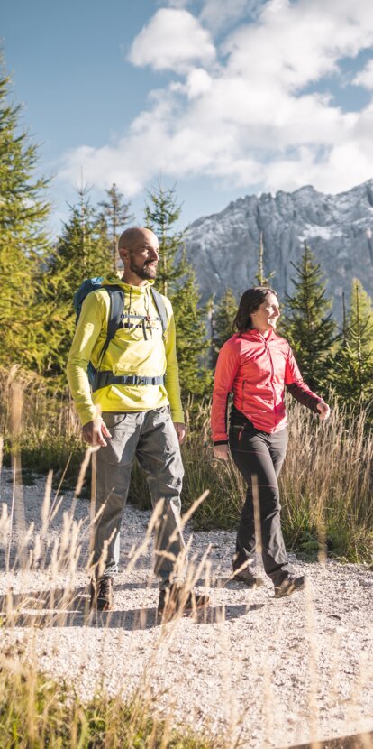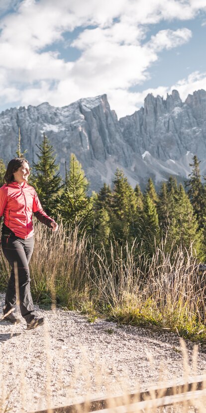 Mit dem Wandern ist es wie mit dem Sonnenuntergang – gemeinsam erlebt ist’s umso schöner! Wenn ein/e WanderführerIn dann noch am Realbeispiel die Naturwunder der Dolomitenwelt zwischen Rosengarten und Latemar erklärt, wird die Wanderung erst recht zum Wissensparcours für den neugierigen Geist. Die farbenfrohen Kräuter- und Blumenfelder am Wegesrand, der dichtgrüne Karerwald, das zartrosa Abendglühen der Dolomiten vom Weißhorn aus, der schillernde Sternenhimmel über Gummer – im Eggental kommen geführte Wandertouren mit Staun-Garantie daher! Und hier kannst du die geführten Wanderungen auch ganz einfach online buchen: