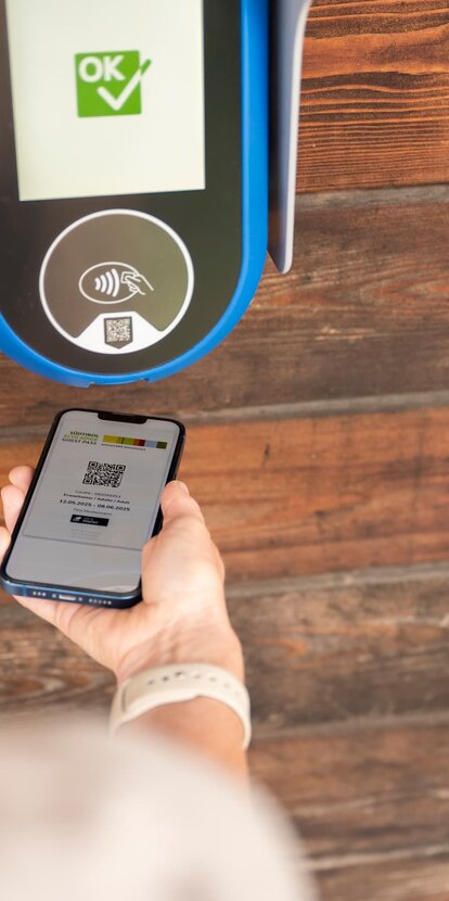 WICHTIG: Der Südtirol Guest Pass ist bei Antritt jeder Fahrt bei den blauen Entwertungsgeräten im Bus oder an den Bahnhöfen zu entwerten. Die Entwertung erfolgt mittels Scannens des QR-Codes.