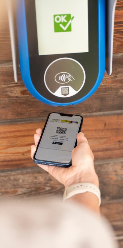 Der Südtirol Guest Pass wird von teilnehmenden Unterkünften beim Check-in oder Pre-Check-in ausgestellt und per E-Mail bereitgestellt.